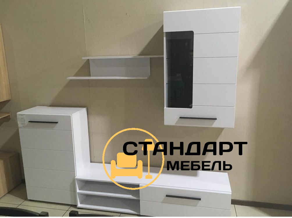 код 112952Гостиная Лена - это компактный гарнитур для гостиной универсального белого цвета.