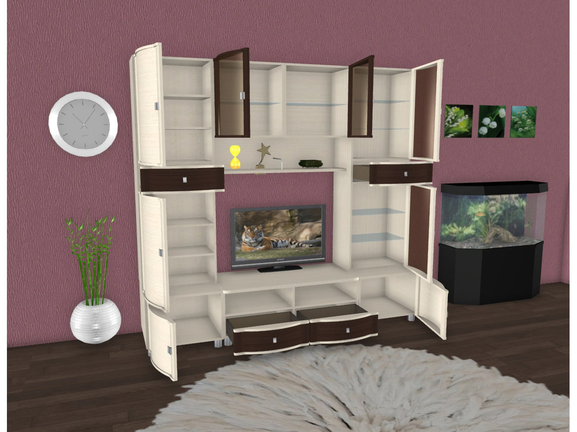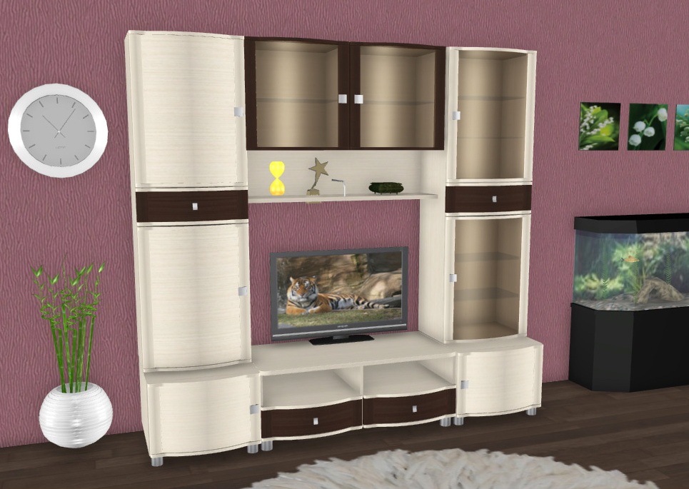 Модульная коллекция корпусной мебели для гостиной. Материал: МДФ покрытый плёнкой, ЛДСП.