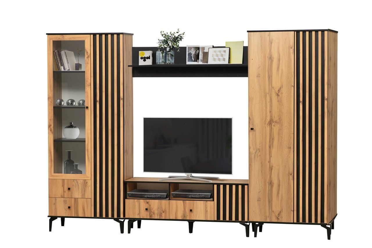 Гостиная «Либерти 4» (дуб вотан/черный/профиль дуб вотан)