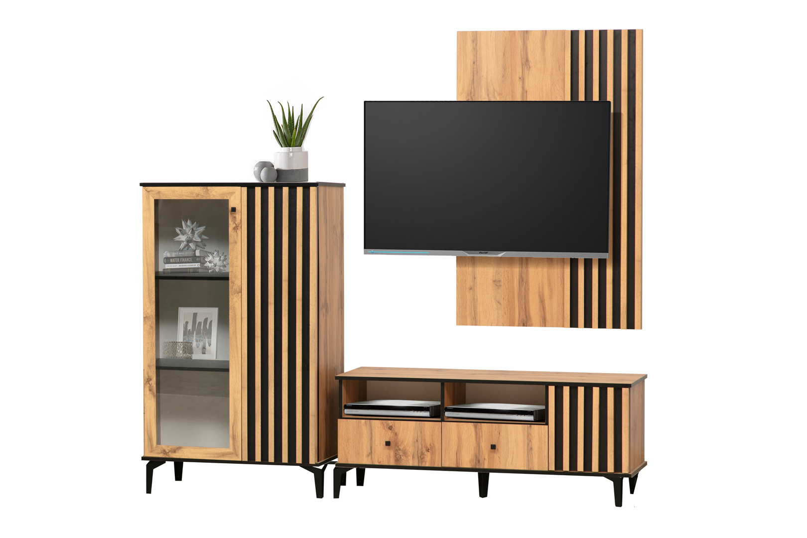 Гостиная «Либерти 5» дуб вотан/черный/профиль дуб вотан