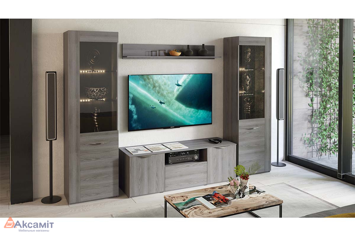 Гостиная «Quartz-2 (Кварц)» Дуб нокс с подсветкой ИнтерЛиния