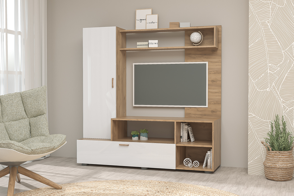 Стенка «Флоренция-5» дуб сонома светлый-белый глянец