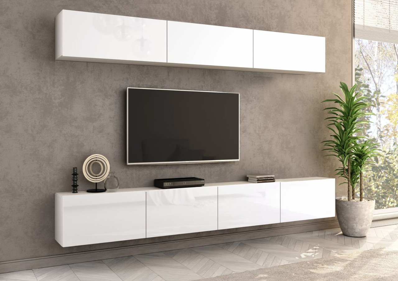 Гостиная «Лия-3» Комплект 1 - Белый /Белый глянец Рикко