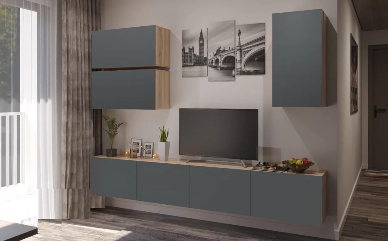 Гостиная «Лия-3» Комплект 1 - Сонома/Графит Рикко