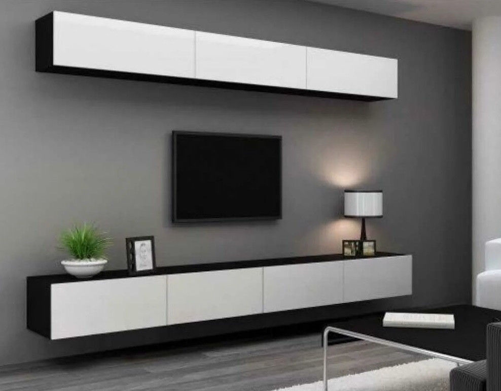 Модульный набор мебели с белыми глянцевыми фасадами в гостиную. Материал: МДФ покрытый плёнкой, ЛДСП.