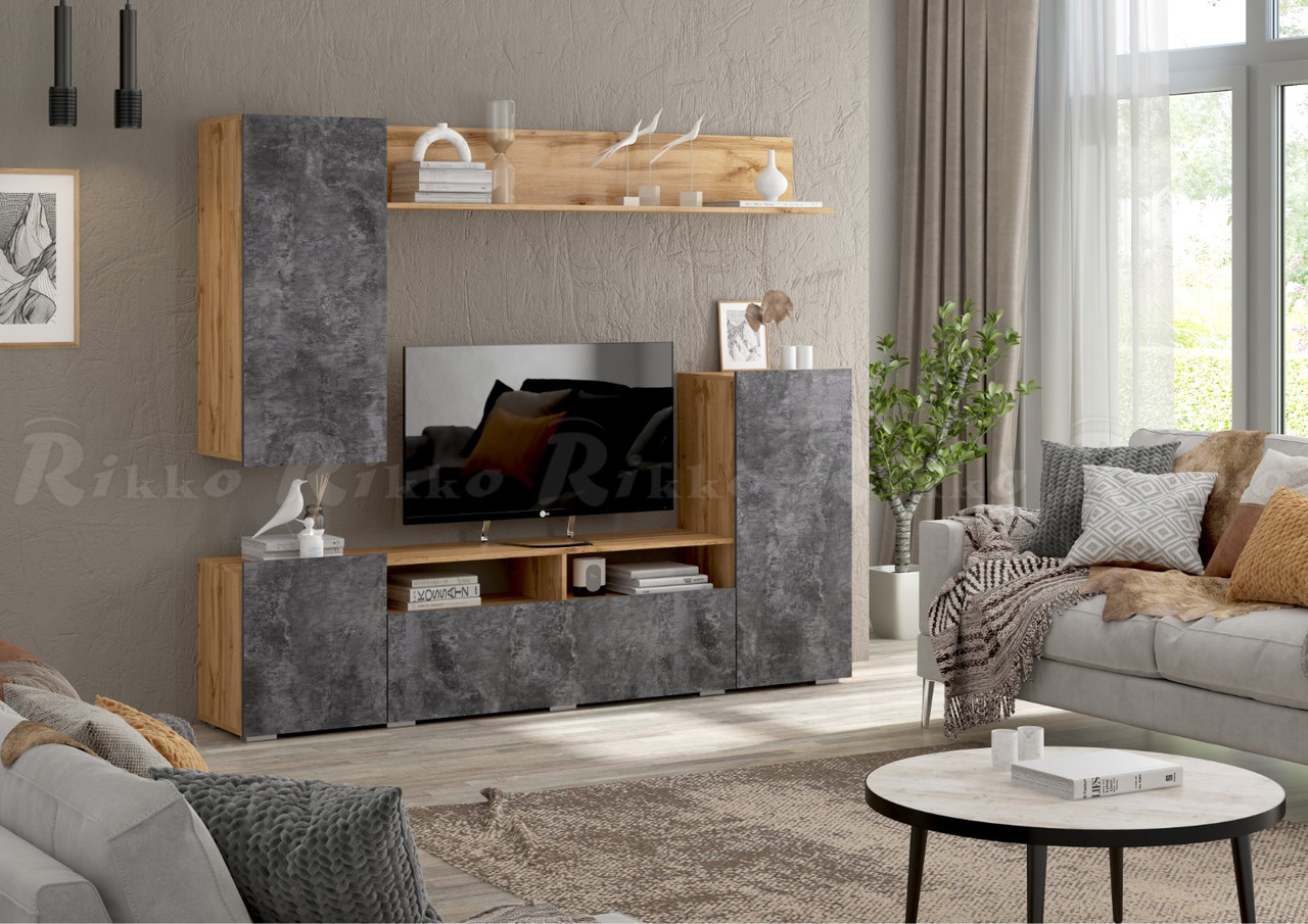 Гостиная «Лия ЛДСП» Дуб Вотан/Бетон тёмный Рикко