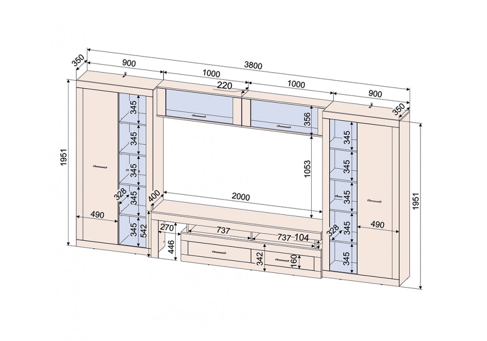 Размер: 4100x396x2000 мм. Материал: ЛДСП.