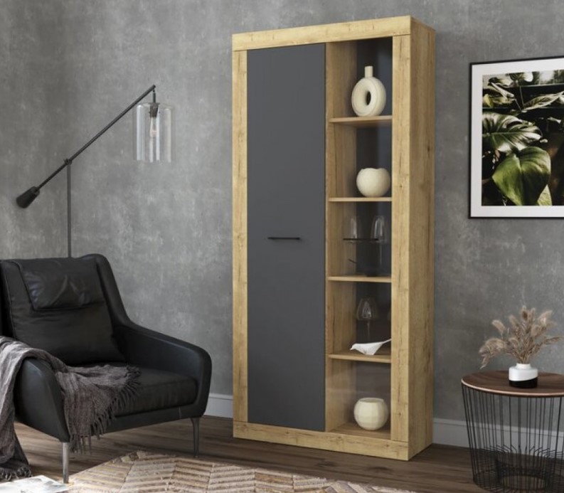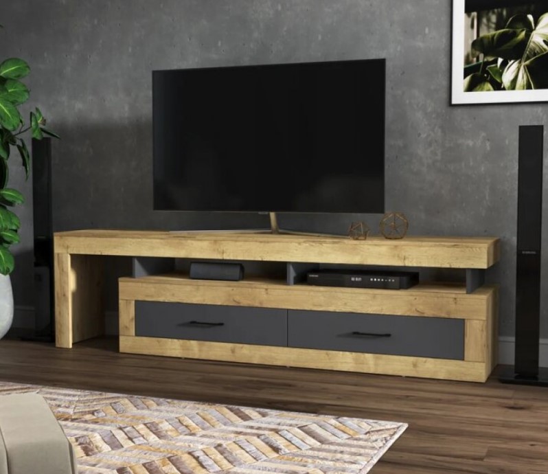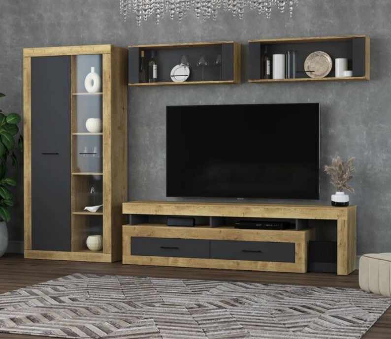 Модульная современная гостиная с фасадами из МДФ. Цвет: сонома / бетон графит.