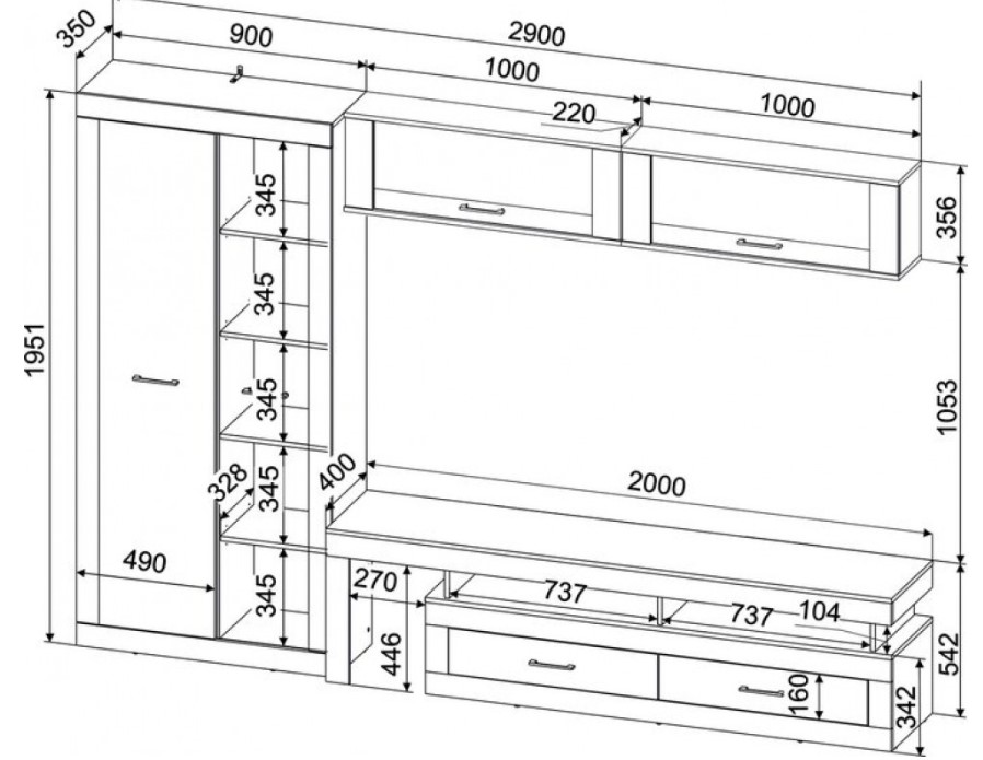 Размер: 2130х371х1680 мм. Материал: ЛДСП.