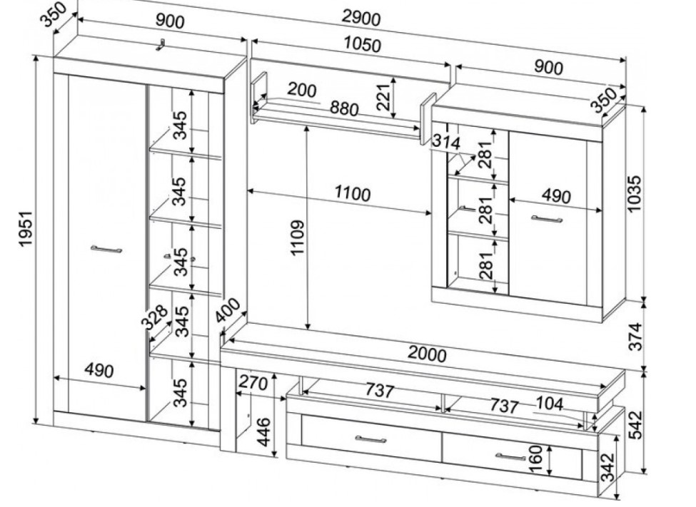 Габариты (ВхШхГ): 2072x3008x356 мм. Материал: МДФ, ЛДСП.