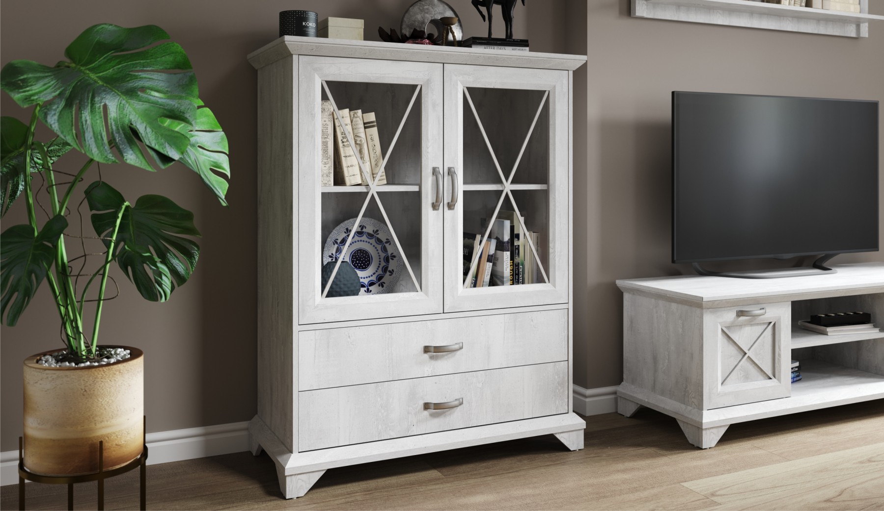 Гостиная «Лорена витрина+комод» Бетон пайн белый (Империал)