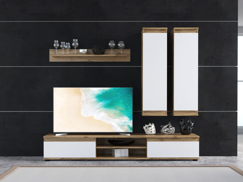 Компактный набор мебели в гостиную комнату придаст интерьеру динамичности. Лаконичный дизайн и комбинация фактур придутся по душе любителям минимализма. Распашные дверцы открываются за счет необычного рельефа фасадов. Приобрести модель «Люсия 175» можно только комплектом.