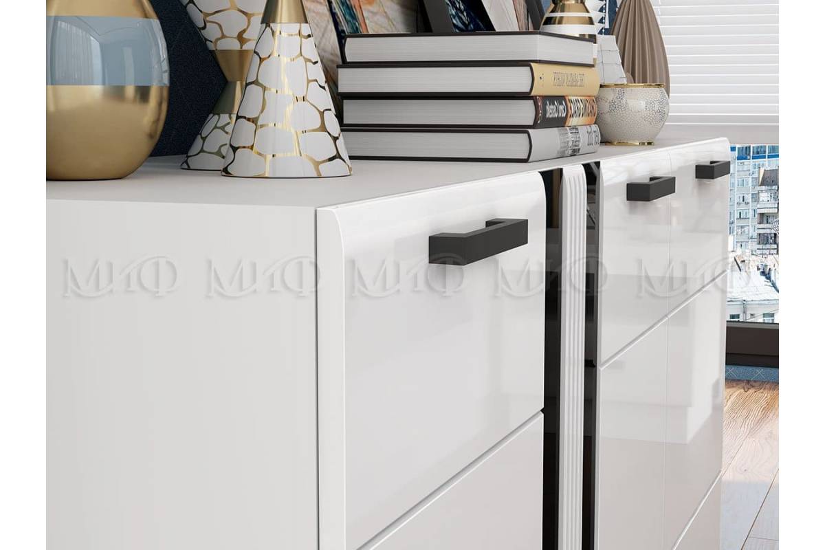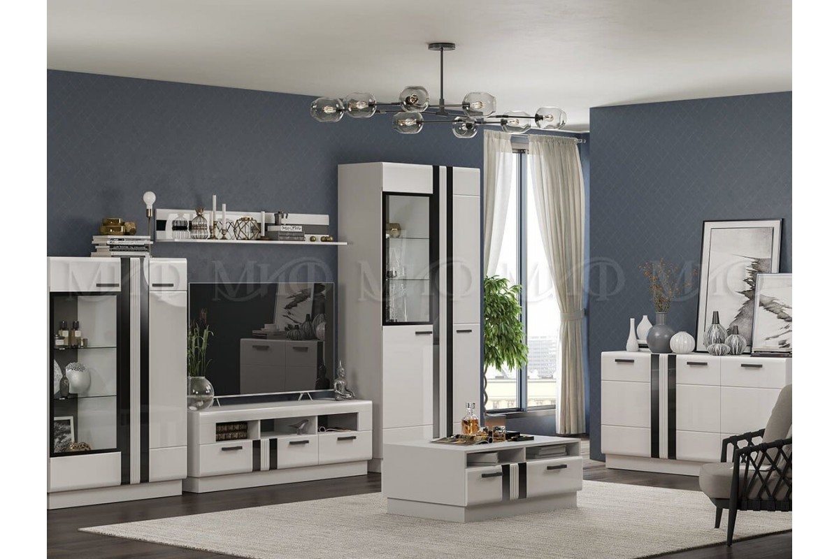 Набор мебели для гостиной в современном стиле с глянцевой поверхностью.