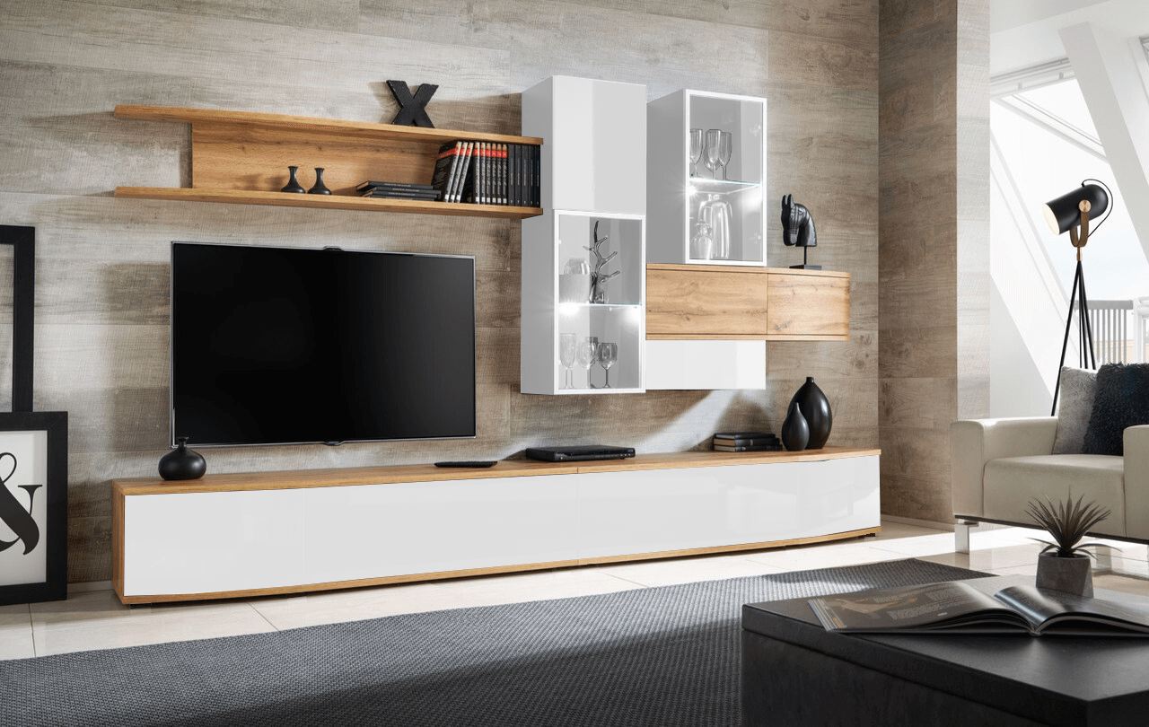 Гостиная «NEO - 7» с подсветкой (белый - серый)