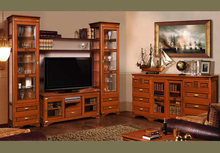 Калипсо — коллекция для гостиной, в которой выразительность сочетается с утонченностью благодаря теплой текстуре дерева и глубоким зеленым акцентам.