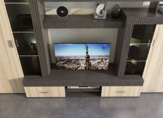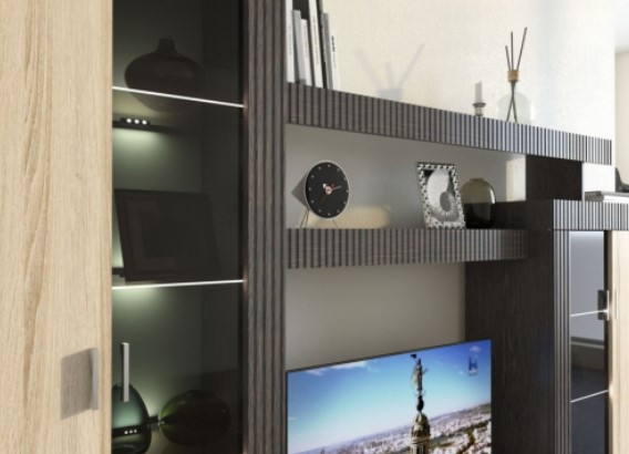 Толщина полок 5мм, они с легкостью выдержат вес посуды, книг и предметов декора, которые будут защищены от пыли, а светодиодная подсветка создаст теплую атмосферу уюта в гостиной.
