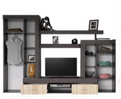 Модульная коллекция мебели в цвете дуба с черным обрамлением. Материал: ЛДСП.