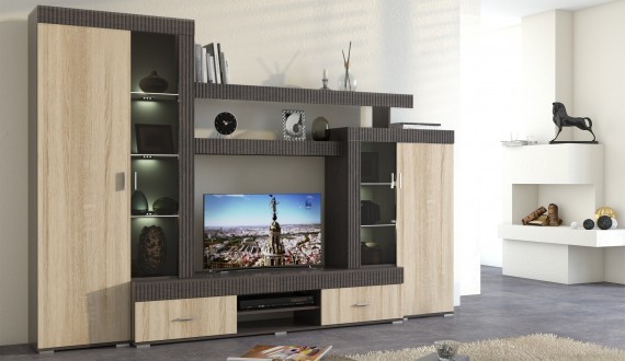 Модульный комплект мебели для гостиной. Размер (ШхВхГ): 3006х2016х377 мм.
