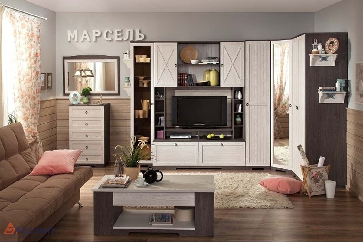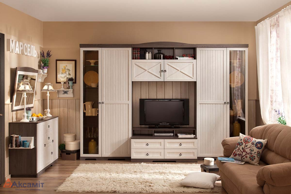 Коллекция для гостиной МАРСЕЛЬ в стиле прованс понравится тем, кто предпочитает уют деревенского стиля современным минималистичным интерьерам. Этот стиль не терпит роскоши и дорогозивны, такая мебель подходит тем, что наслаждается простотой и не склонен придавать большое значение мелочам.