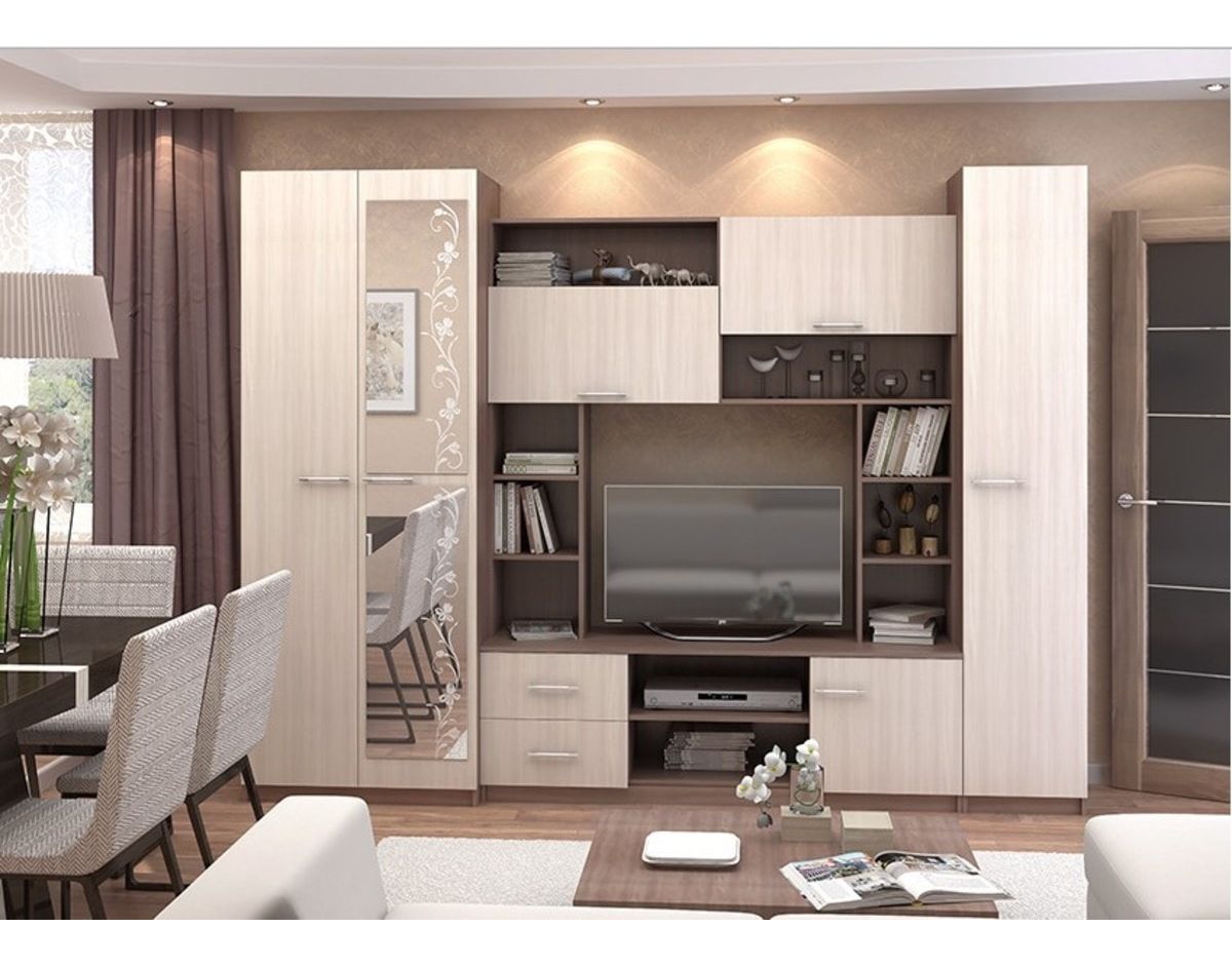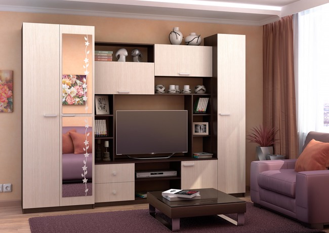 - Прямой набор для гостиной имеет шесть дверей ( пять глухих одну зеркальную )