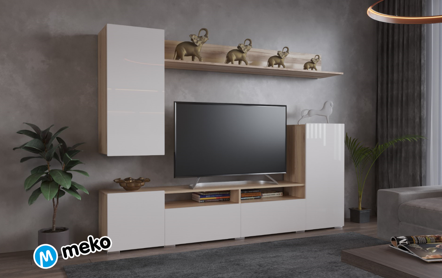 код 127373В состав стенки входит ниша под ТВ с открытыми и закрытыми полками.
