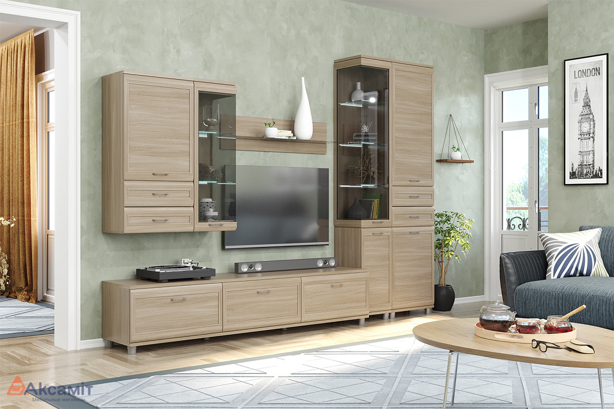 код 122768Модульный набор мебели в гостиную. Материал: ЛДСП, МДФ. Европейская фурнитура.