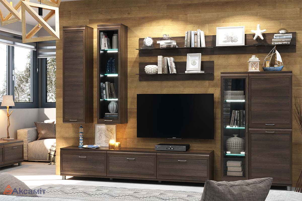 Гостиная «Quartz-6 (Кварц)» Дуб нокс без подсветки ИнтерЛиния
