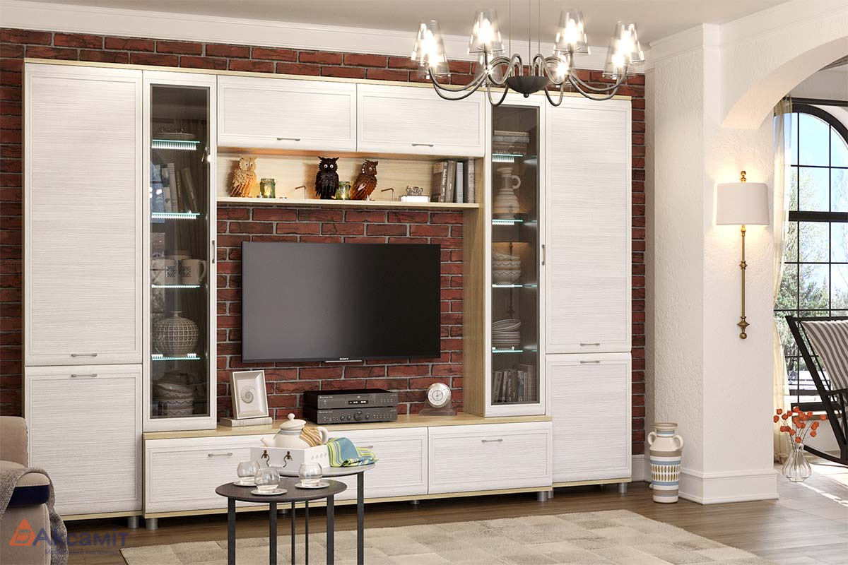 код 122756Модульный набор мебели в гостиную. Материал: ЛДСП, МДФ. Европейская фурнитура.