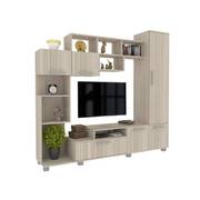 Комплект состоит из пенала, тумбы, стойки с открытыми полками и двух навесных полок.