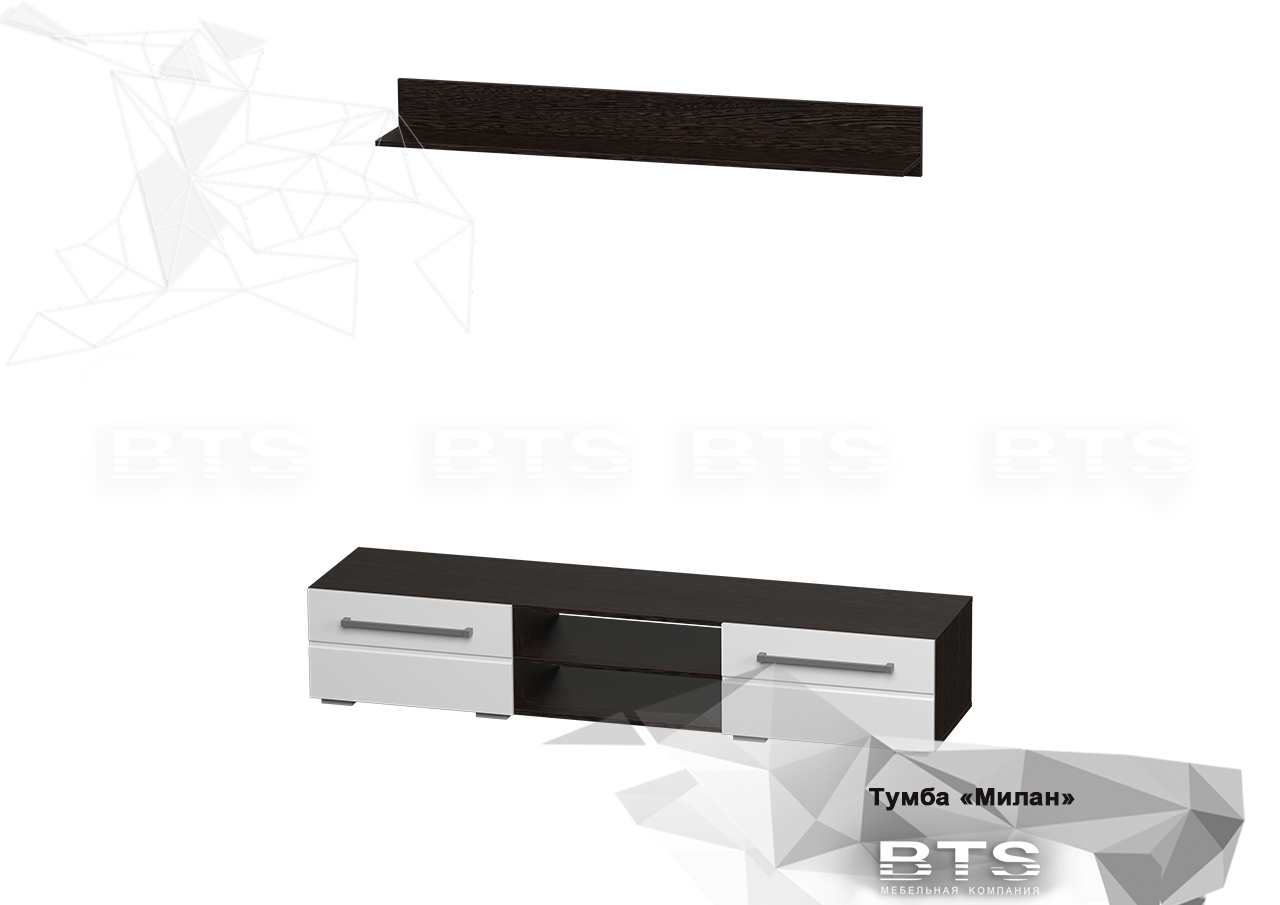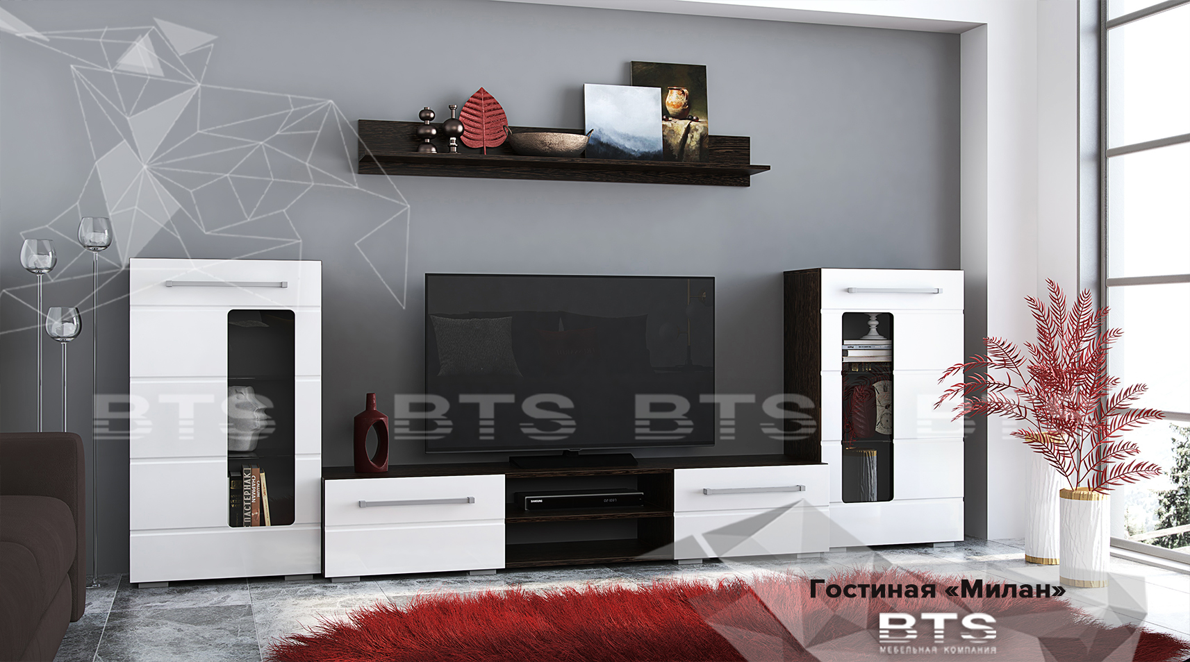 Гостиная «Милан» Комплект 2 - Белый глянец / Венге (BTS)