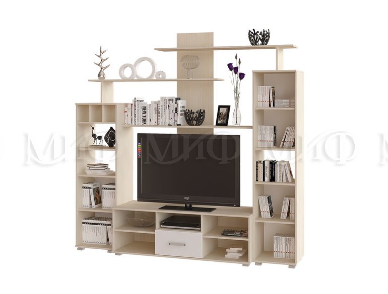 Гостиная «Мини-2» (Белый глянец/Дуб беленый) МИФ