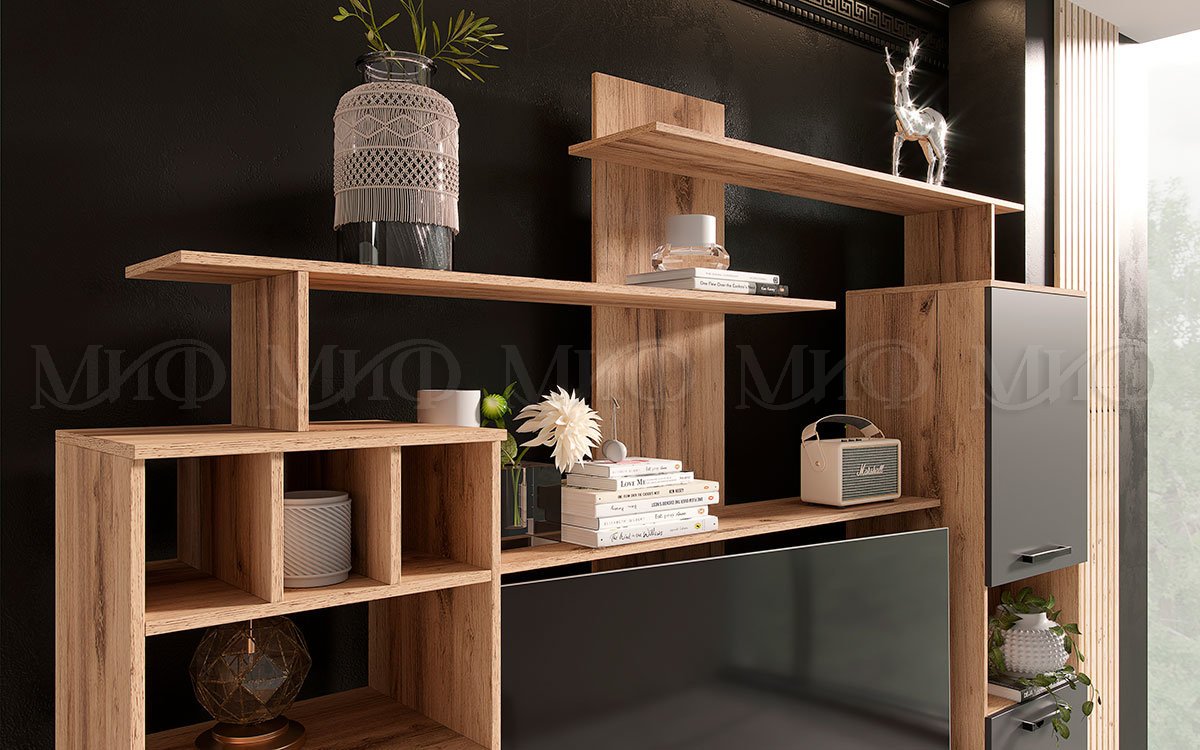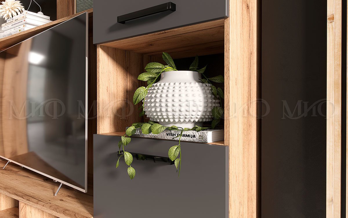 Гостиная «Мини-2» Графит софт / Дуб крафт МИФ