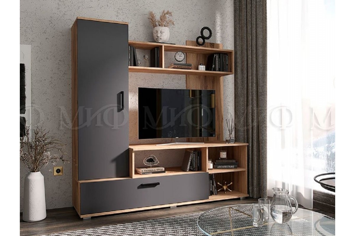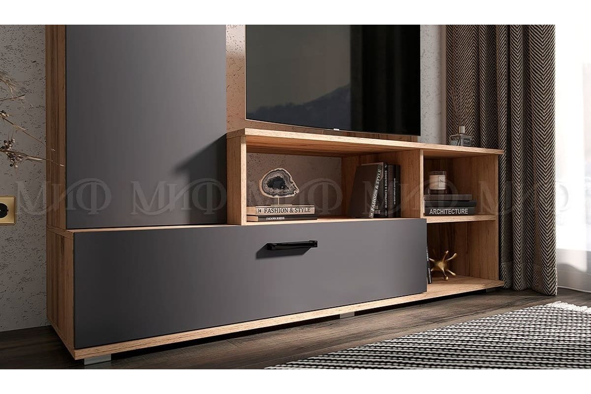 Современная стенка со светлыми фасадами. Стильный дизайн.