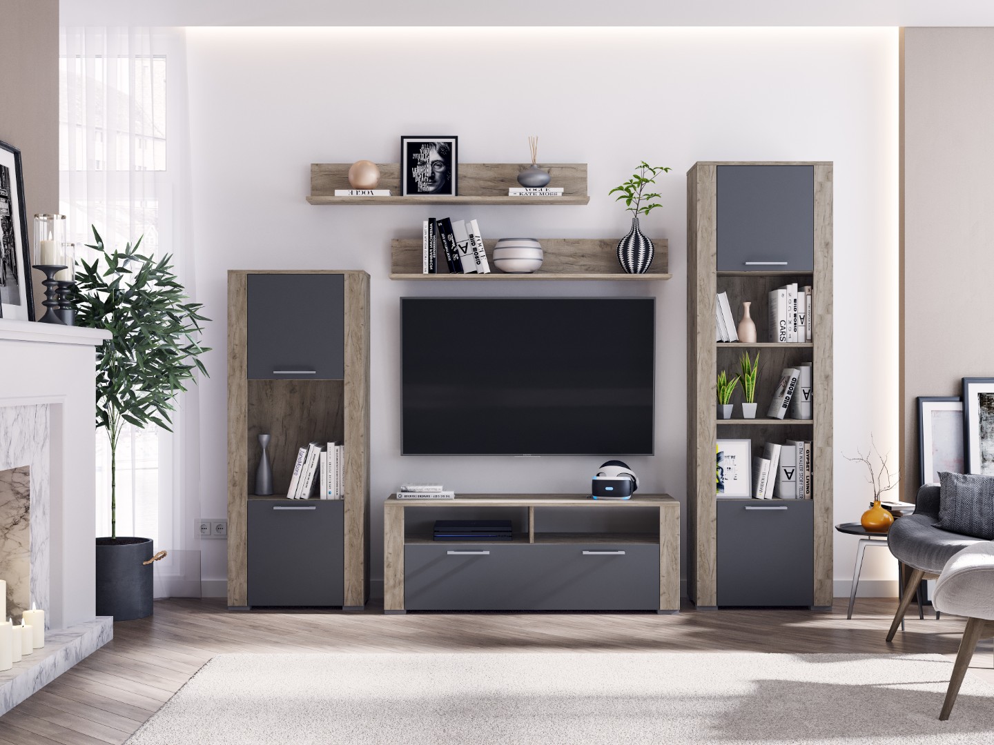 Гостиная «Мирослава» Дуб крафт серый/Графит (Стендмебель)