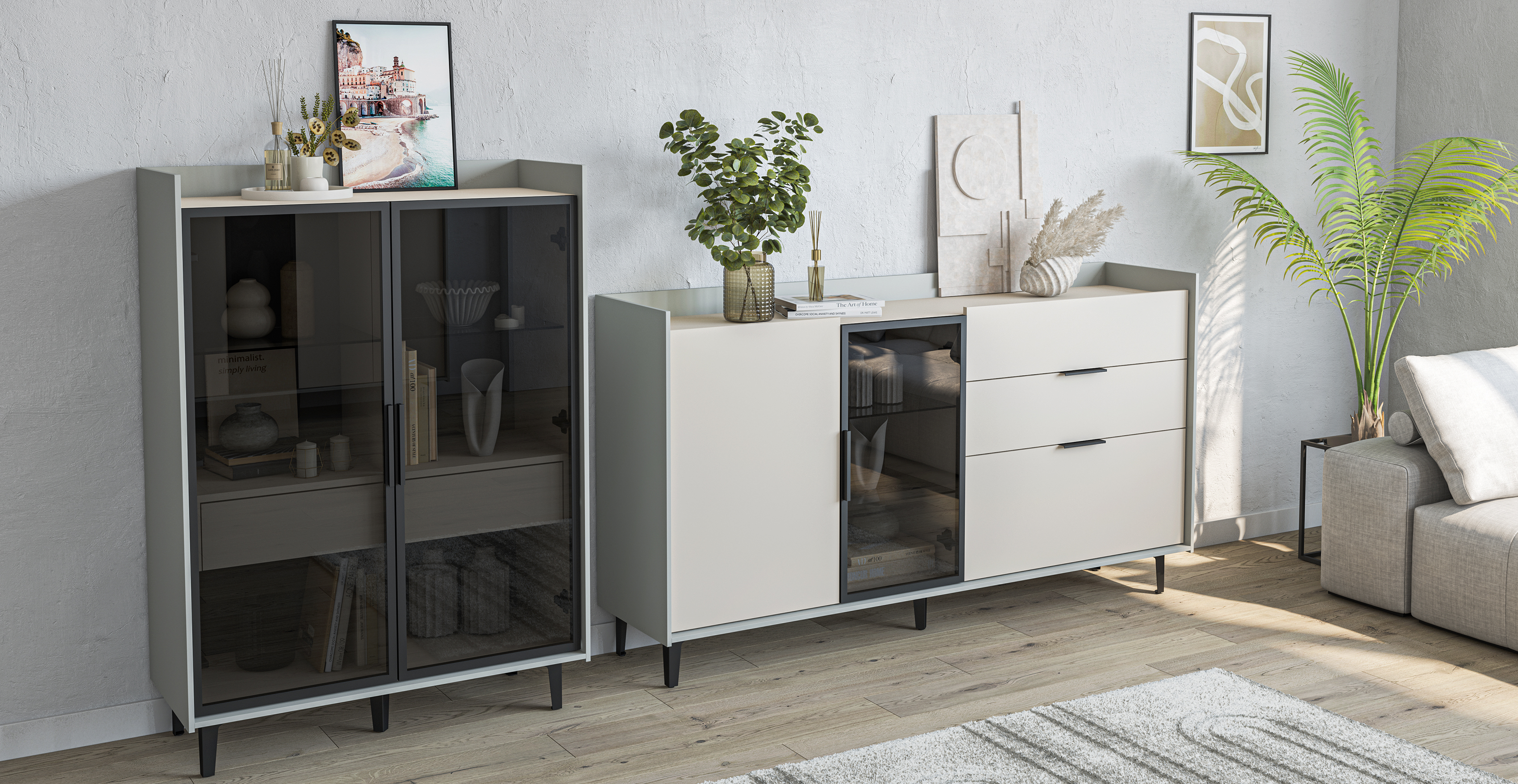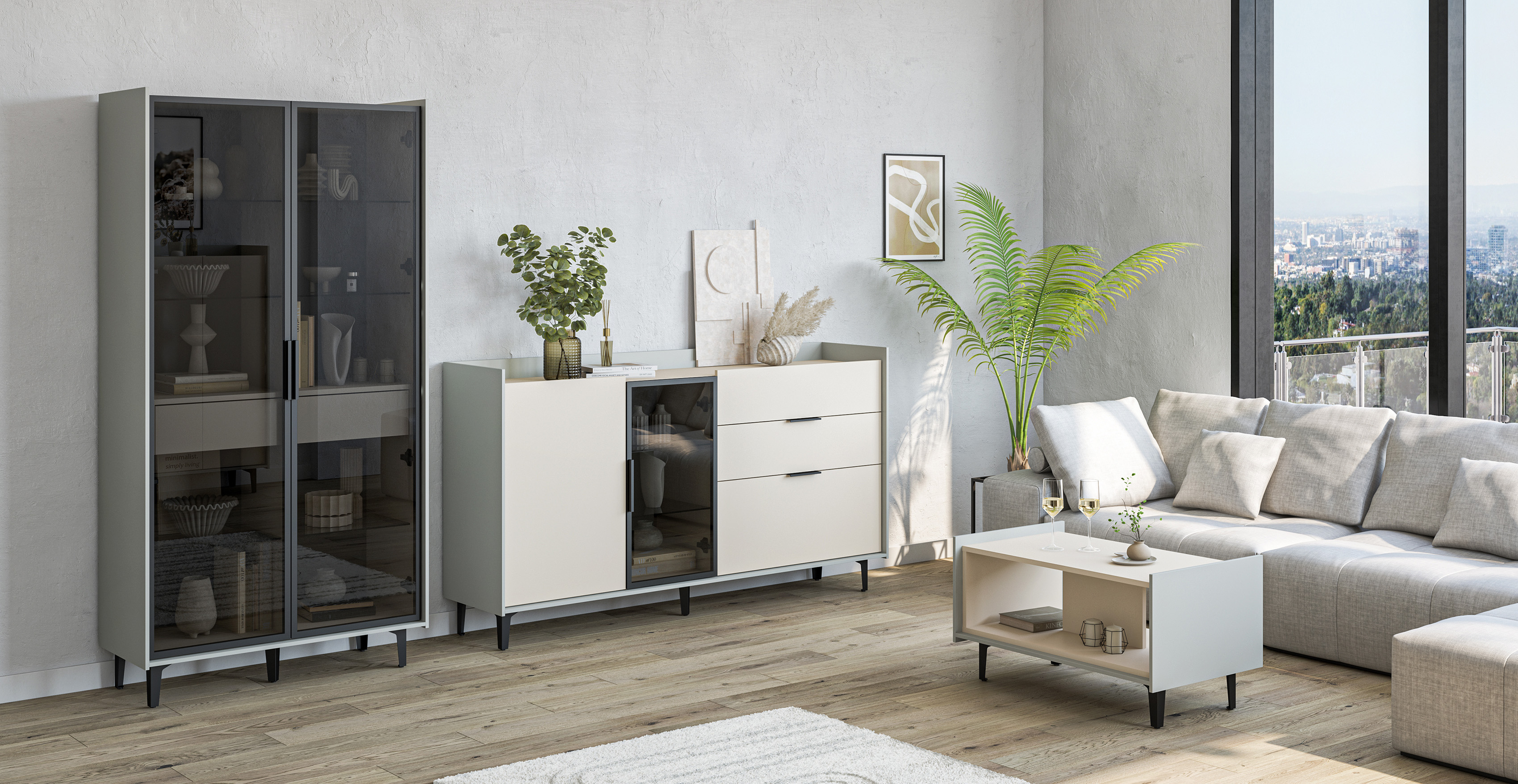 Гостиная «Урбан» (Комплект 1) - Дуб Смоки / Кашемир (BTS)