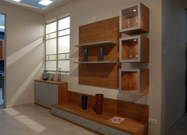Стенка функциональная модульная. Обязательным элементом стильной и современной гостиной является наличие корпусной мебели. Представленный набор состоит из небольшой многофункциональной витрины с полками различных форм и двух тумб для хранения сувениров и семейных фотографий. Мягкий природный цвет дерева придаст вашей гостиной комнате невероятный уют и покой.