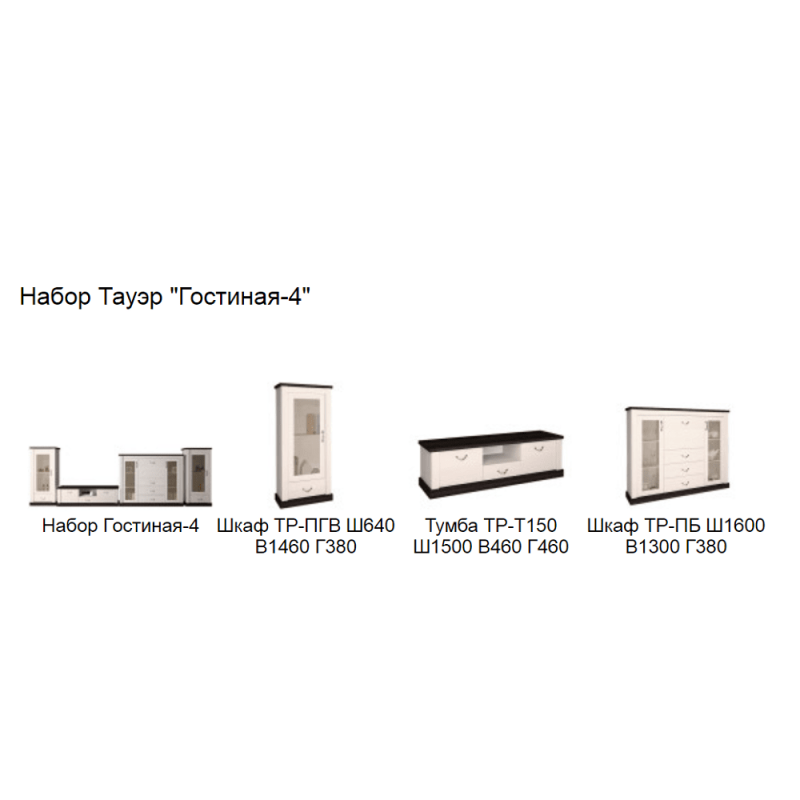В комплект гостиной входит следующие модули:
