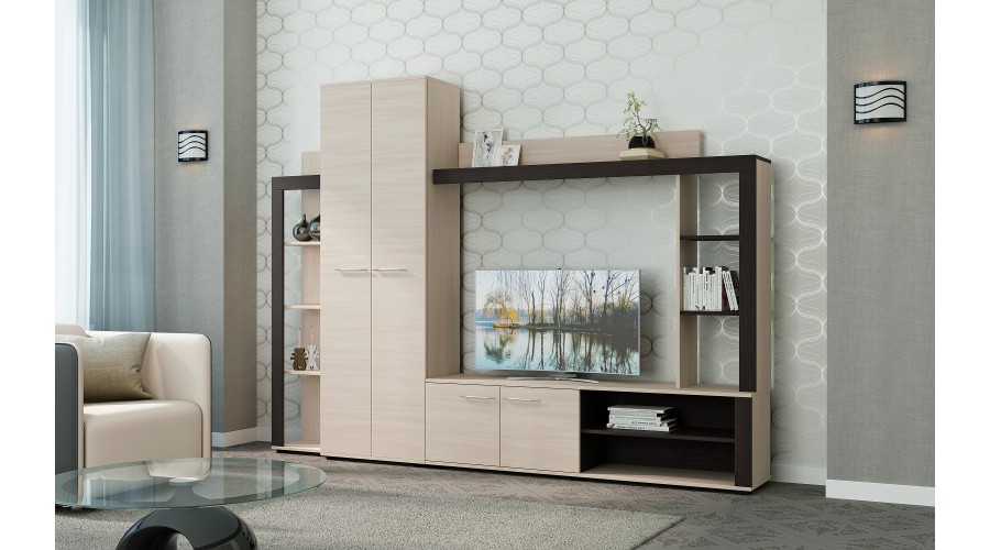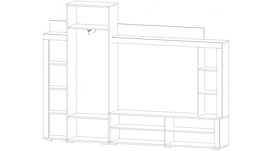 Размеры: 2400х450х2030 мм. Широкая тумба для ТВ. Разноуровневые модули.