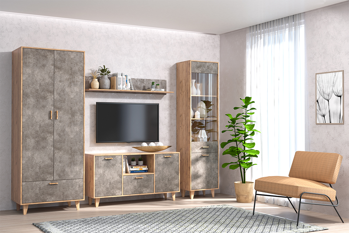 Гостиная «Quartz-2 (Кварц)» Дуб нокс без подсветки ИнтерЛиния