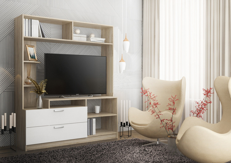 код 107326Состоит из открытых полок, двух ящиков и места для телевизора.