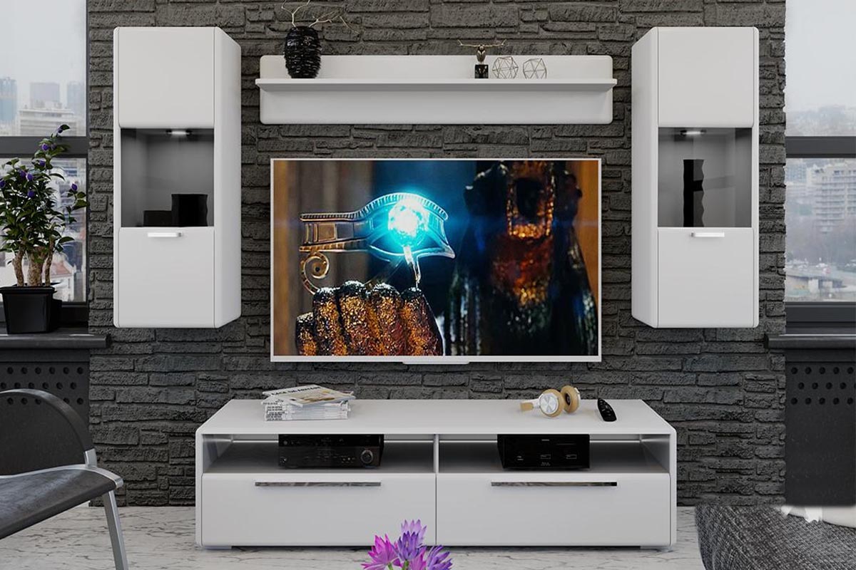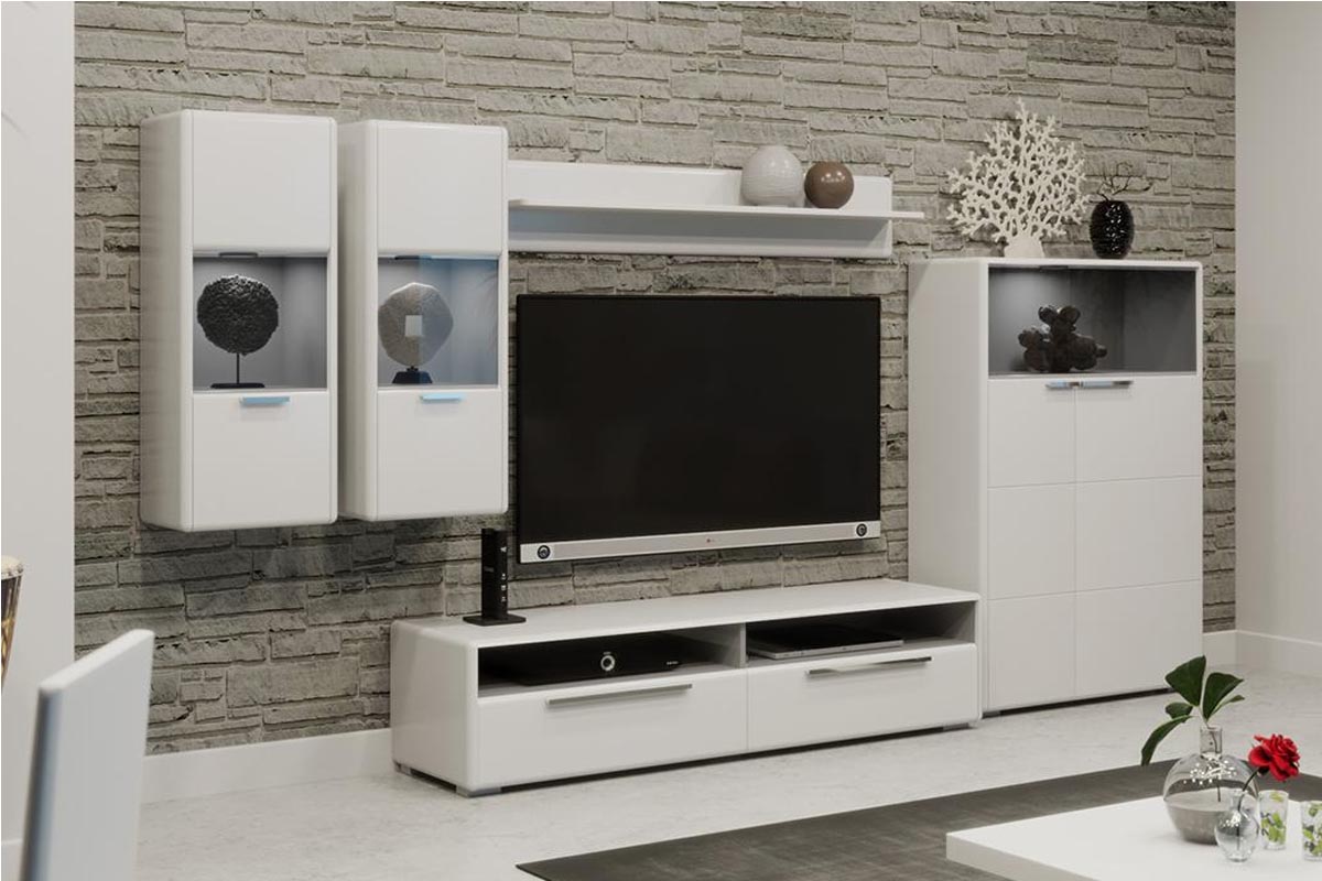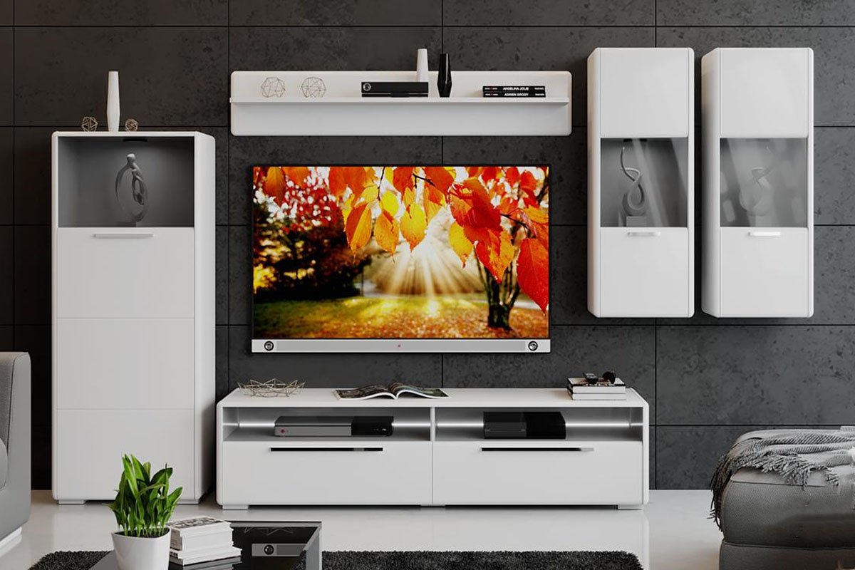 Гостиная «Йорк» с комодом Белый/Белый глянец (2.76м)