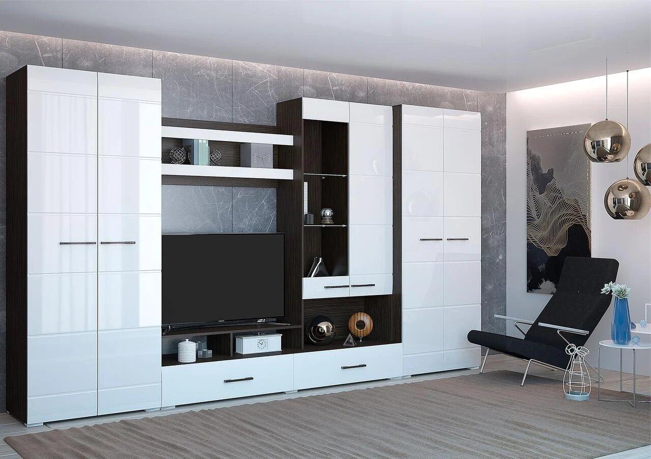 Гостиная «Ненси-1» Комплект 1 Белый глянец / Венге Горизонт