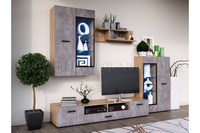 Гостиная «Нэнси-1» с подсветкой ДСП (бетон светлый - дуб сонома)