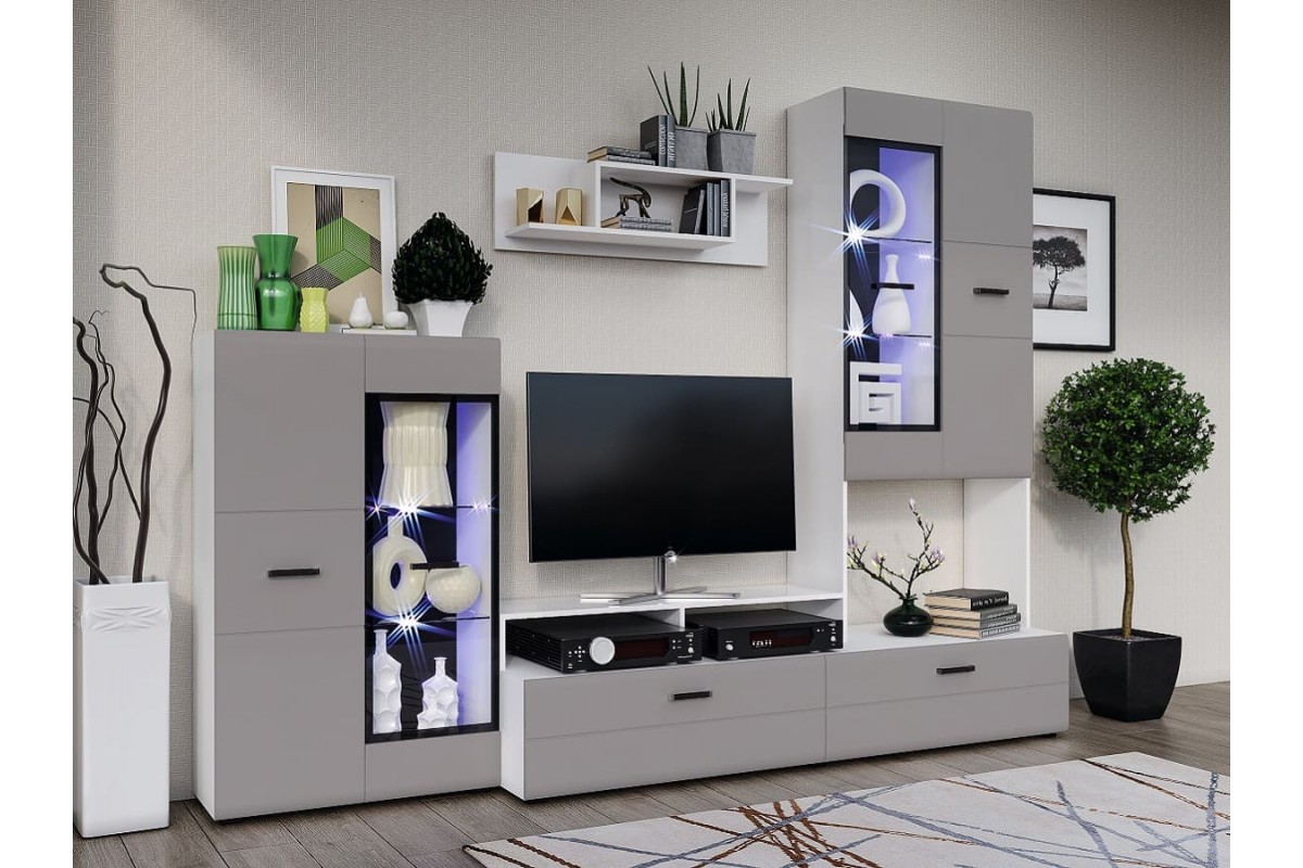 Гостиная «Нэнси-3» с подсветкой увеличенный размер (белый - браш текстура грей)