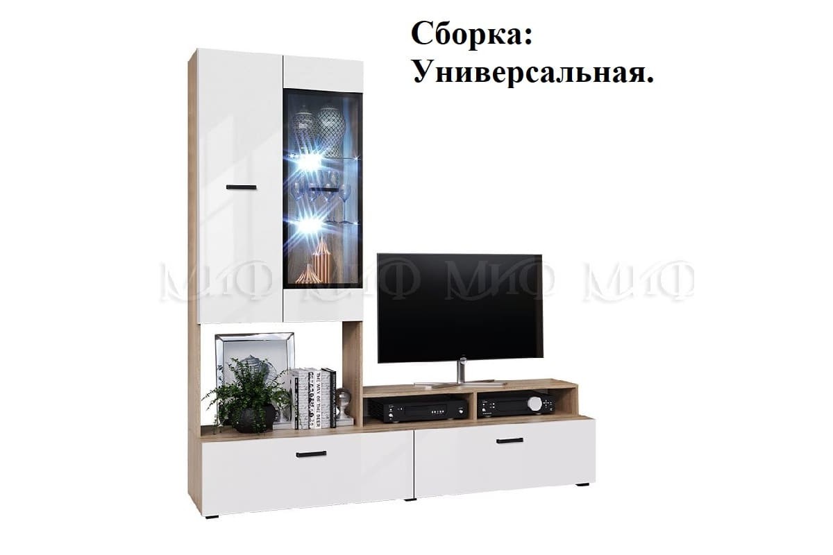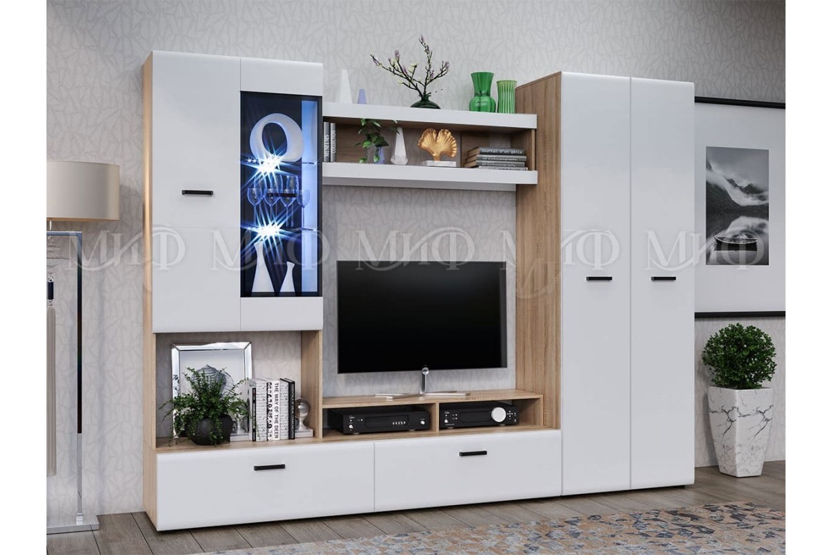 Гостиная «Нэнси-4» с подсветкой ДСП (белый глянец - дуб сонома)