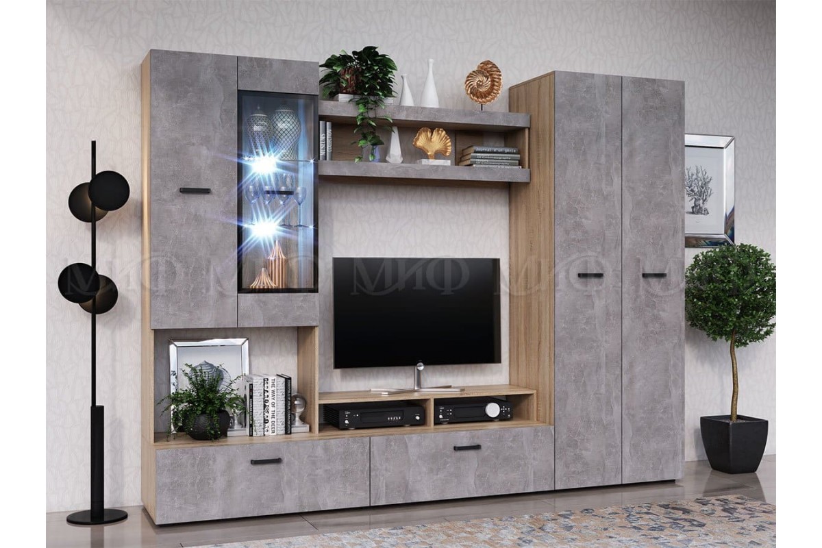 Гостиная «Нэнси-4» с подсветкой ДСП (бетон светлый - дуб сонома)