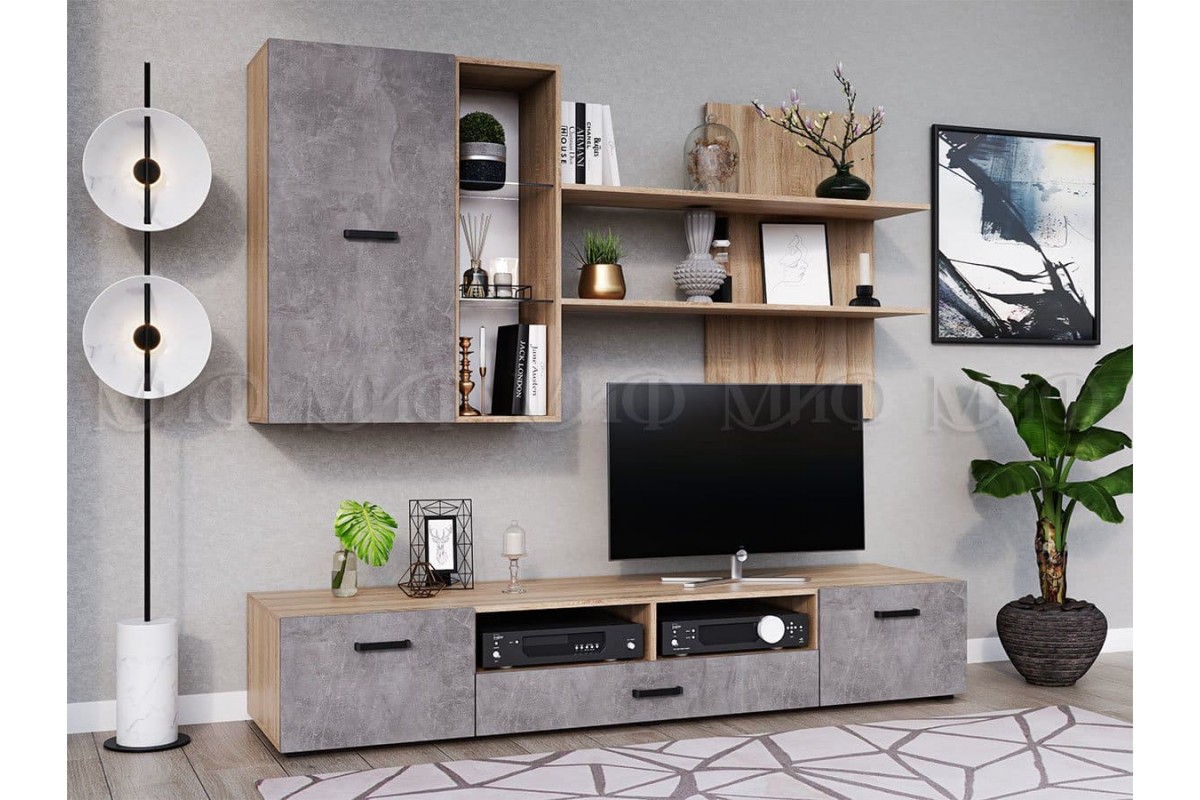Гостиная «Нэнси-5» с подсветкой ДСП (бетон светлый - дуб сонома)