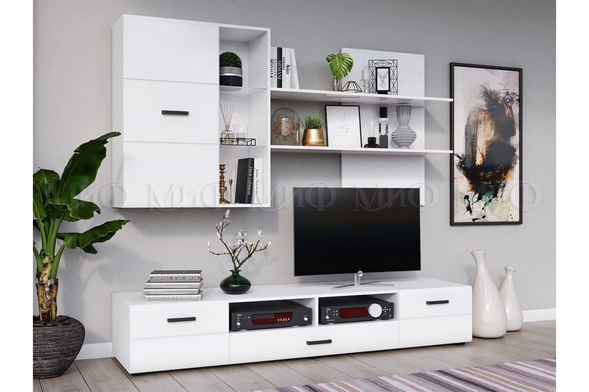 Модульная гостиная «Леонардо» композиция 2 (белый, дуб сонома)