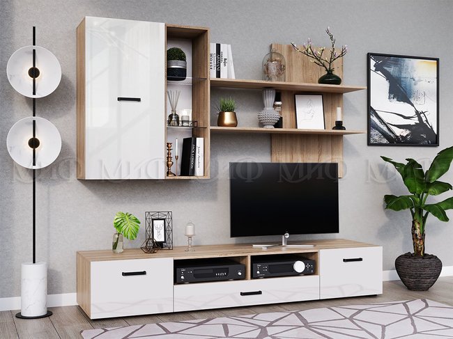 Гостиная «Лия-2» Сонома /Белый глянец Рикко