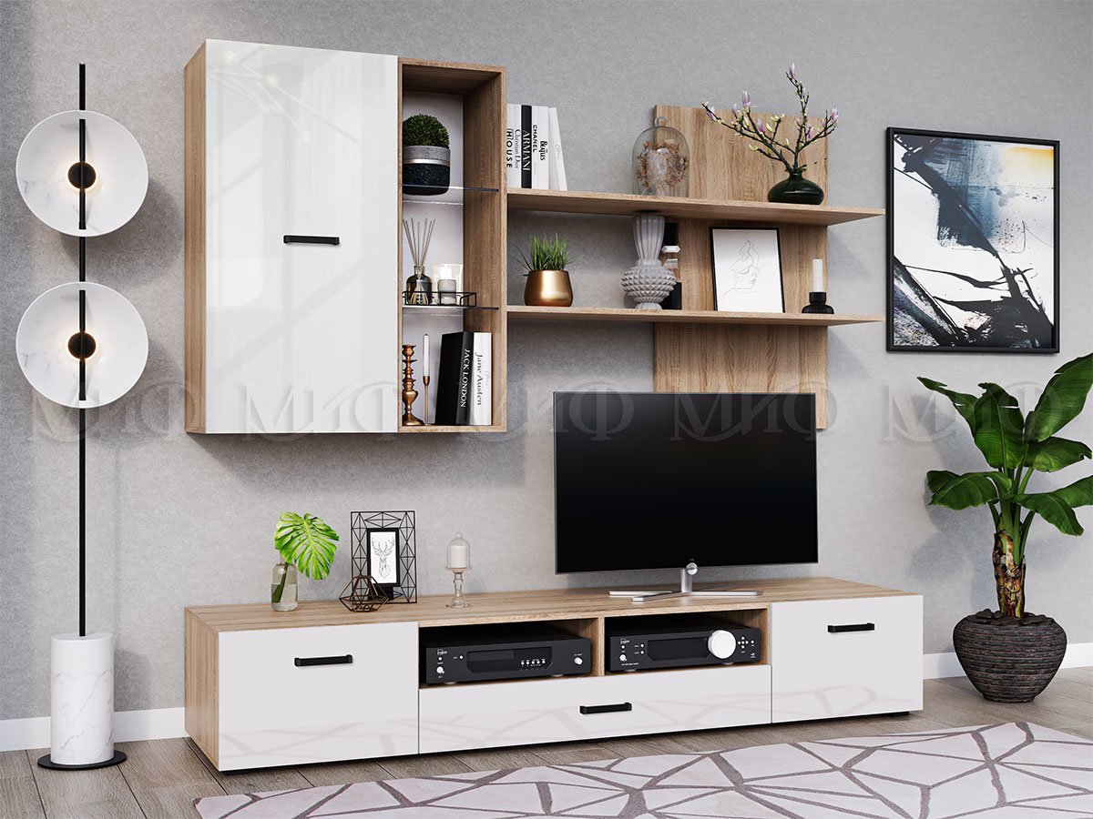 Гостиная «Нэнси NEW» Комплект 1 - Дуб сонома/Белый глянец